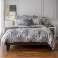 "The Blossom Jacquard Duvet Cover in Moonlight , woven from Giza Egyptian cotton, linen & silk. Luxury bedding by St Genève, made in Canada."